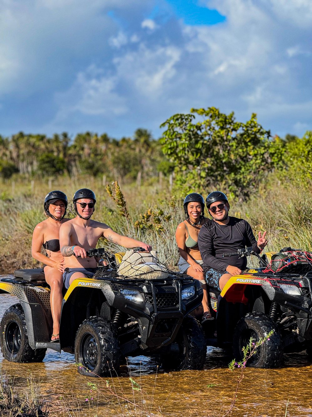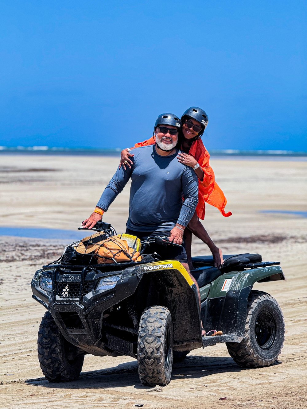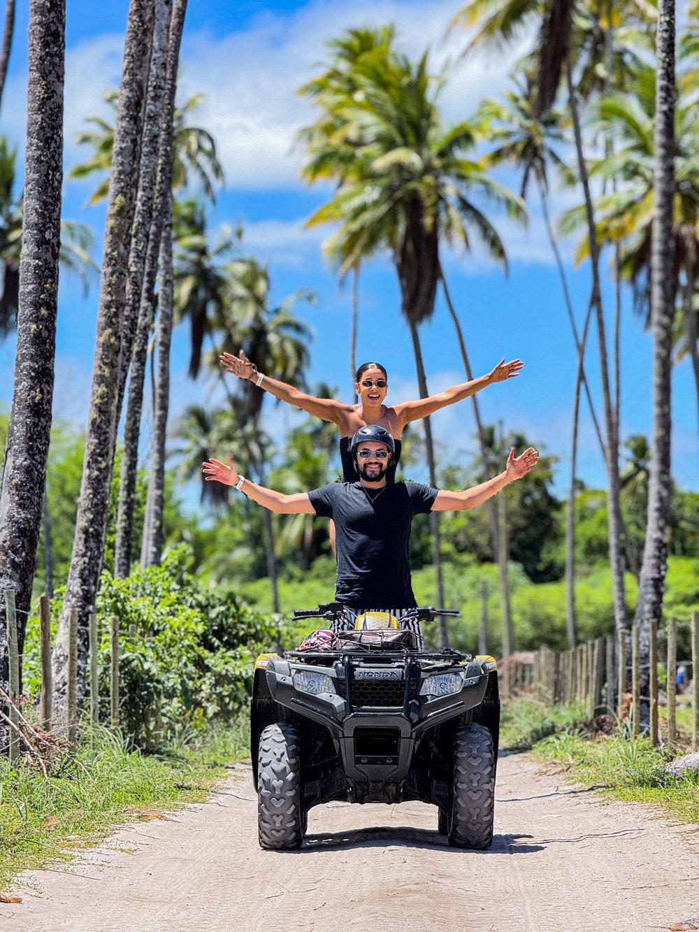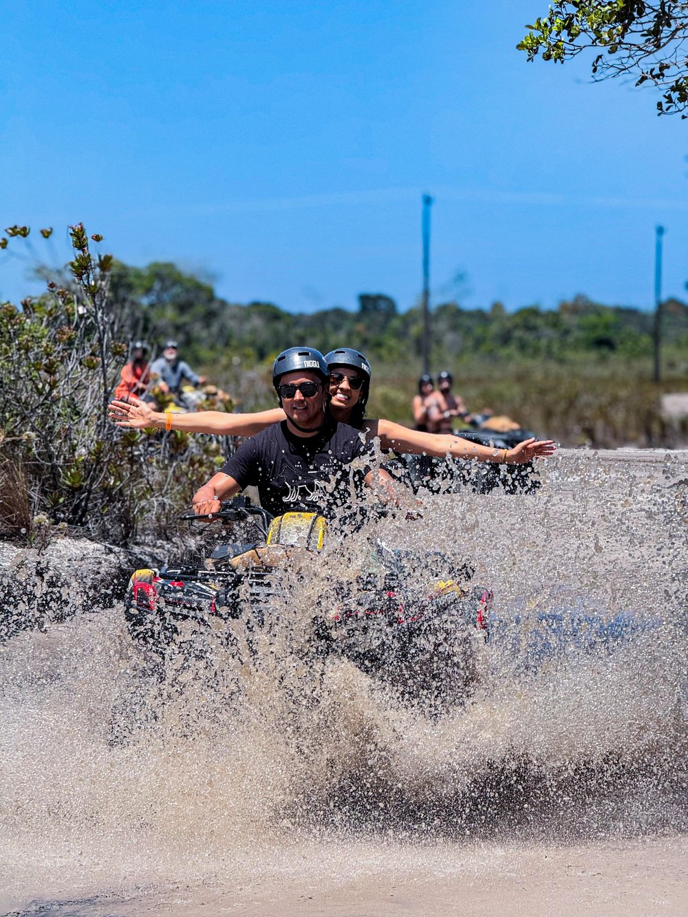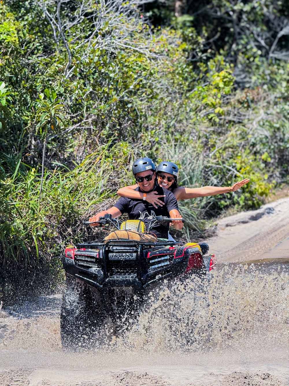 A bordo de quadriciclos, você percorrerá trilhas incríveis, passando por estradas de terra, coqueirais e praias paradisíacas.